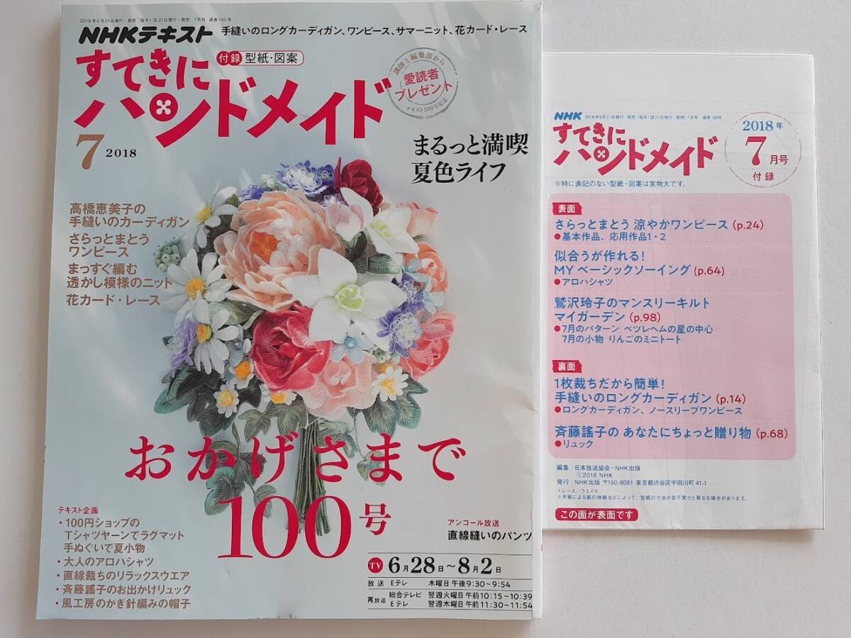 - ★送料込【NHKすてきにハンドメイド2018年7月号】ロングカーデ/ワンピ/サマーニット/花カードレース/直線縫いパンツ/型紙・図案【NHK出版】