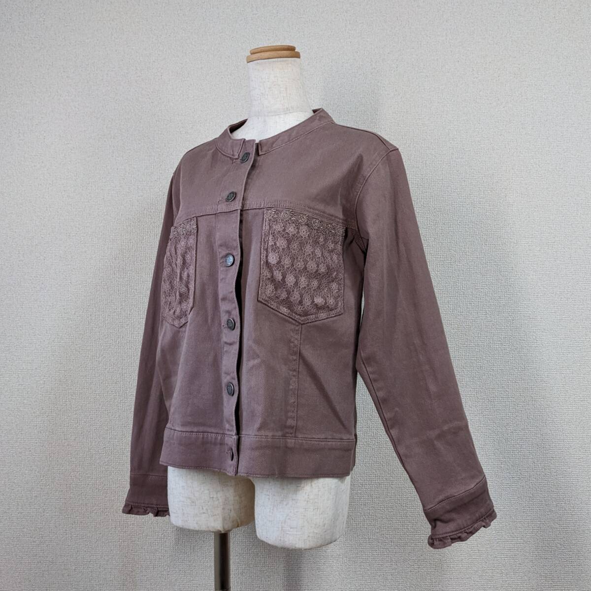 > 【アクシーズファム】ブルゾン ジャンパー ピンク M y2k レース ノーカラー 綿 コットン フェミニン 羽織 美品 axes femme