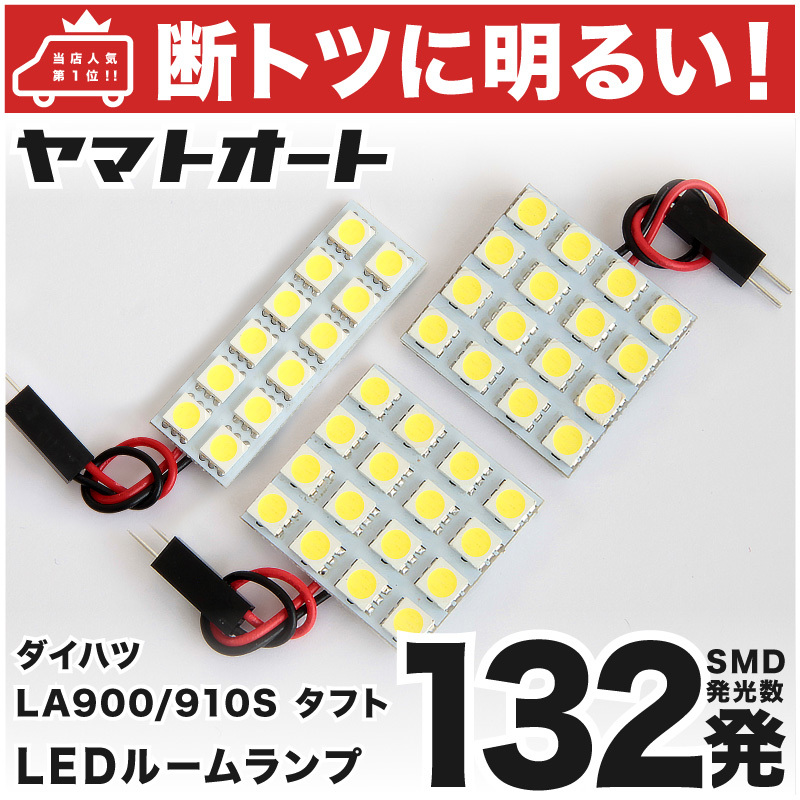 - ◆タフト LA900S LA910S ダイハツ 【断トツ132発】 LED ルームランプ 3点セット 車検対応 TAFT 室内灯 カスタムパーツ カー用品