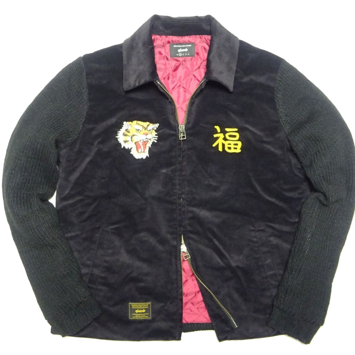 > ★glamb★Jake vietnam JKT 1/黒グラムジェイクベトナムジャケットベトジャンスカジャンパーメンズブラックブルゾン刺繍ウールニット