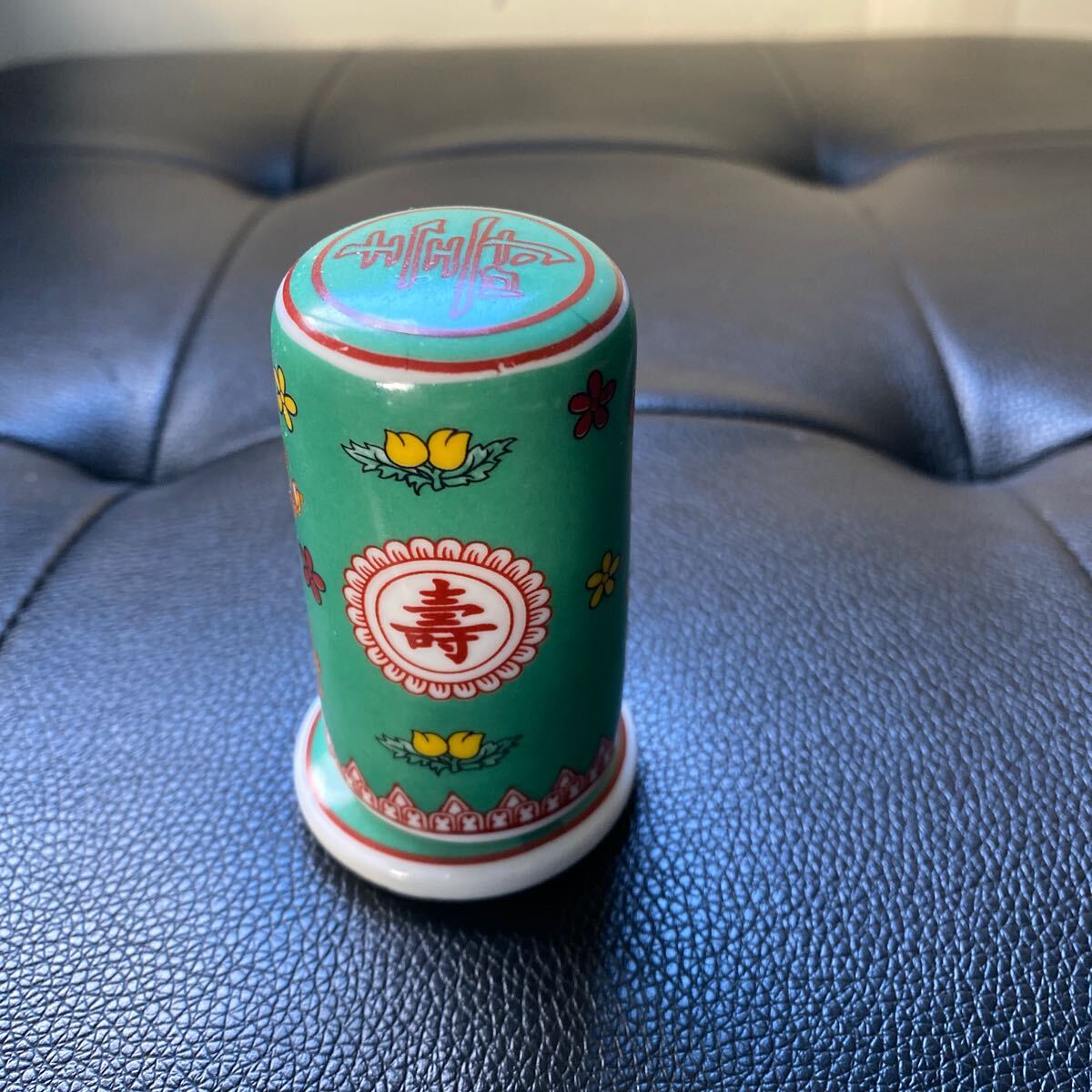 - 中国 景德鎮製 蓋つき 爪楊枝入れ つまようじ立て 陶器製 福壽 福寿