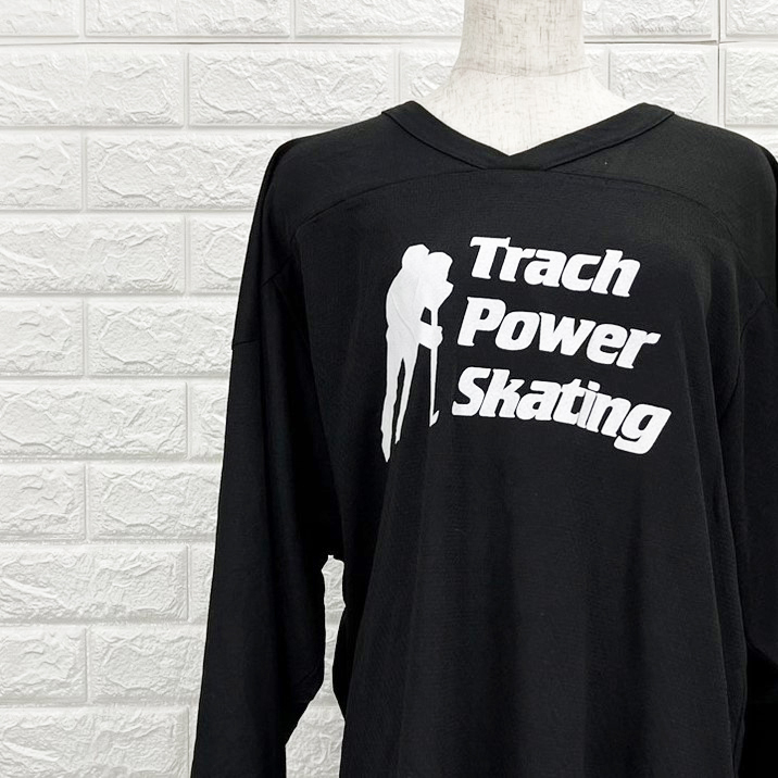- 【A2868】KAMAZU カマズ ホッケーシャツ Tシャツ カットソー トップス メンズ ブラック ロゴプリント入り 7分袖 ロング丈 Sサイズ