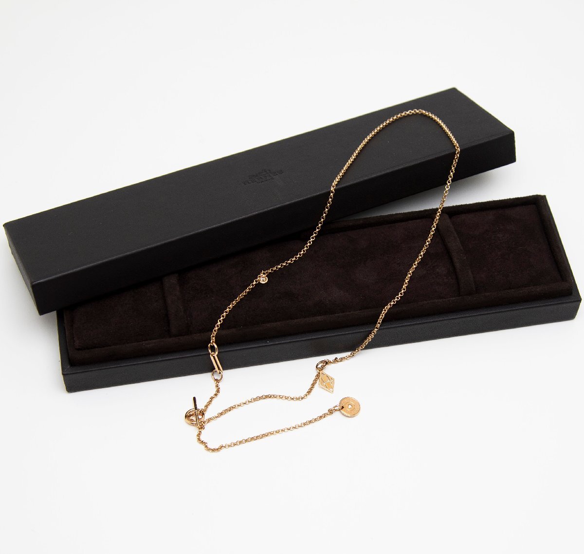 > 中古品 エルメス ガンバード ネックレス クルー・ド・セル Hロゴ 2Pダイヤモンド K18 AU750PG ピンクゴールド Gambade