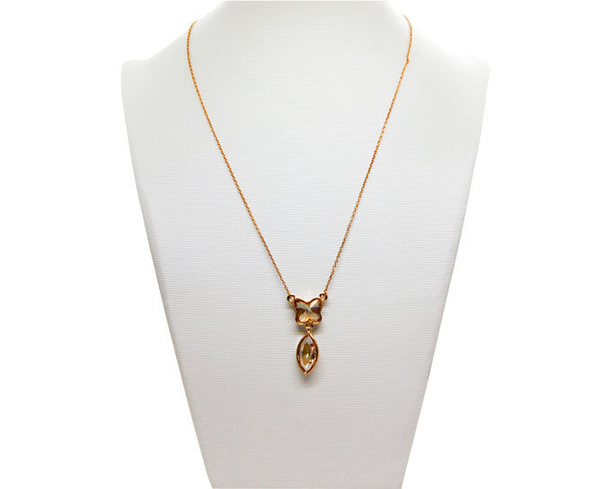 - ネックレス キラキラ レディース クリスタル ビジュー バタフライ しずく ピンクゴールド ギフト mimosa