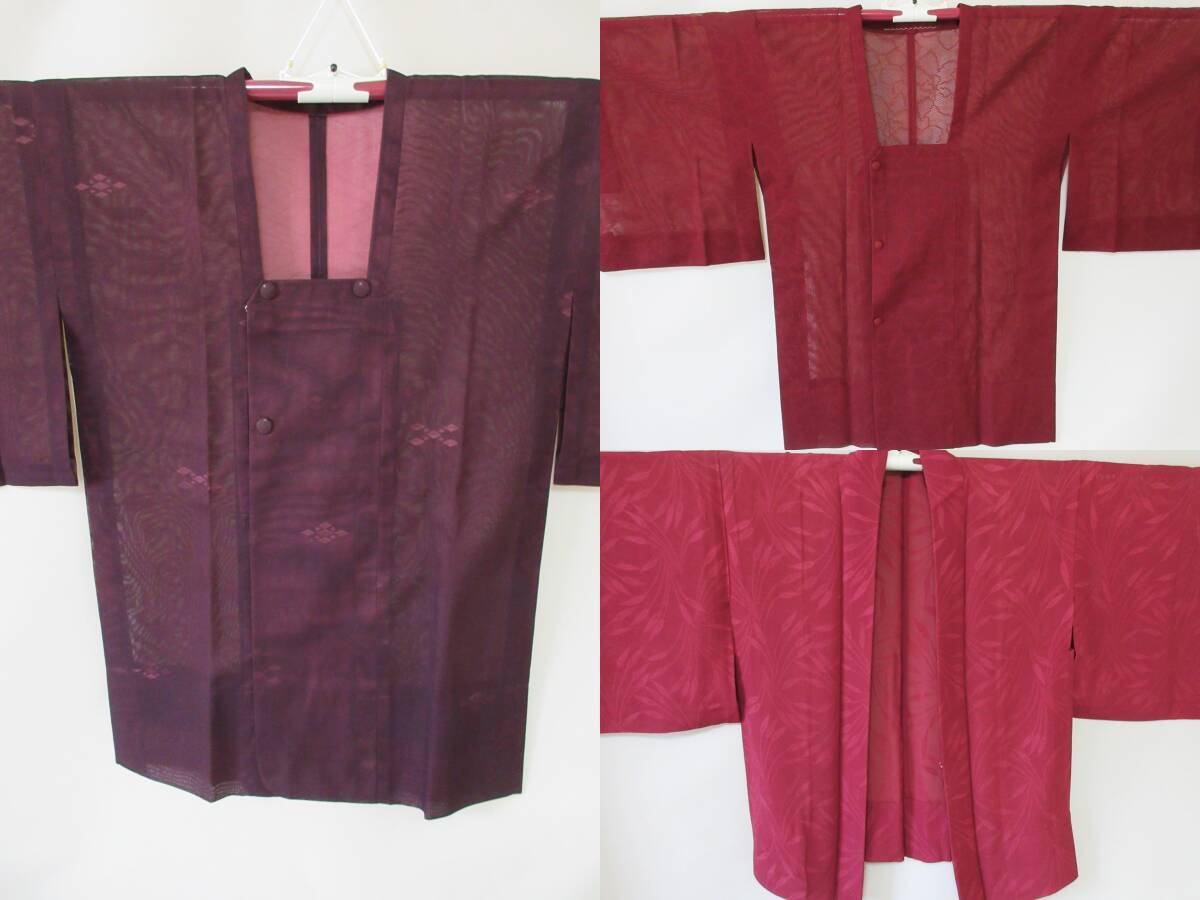 - 47-1 和装 3枚セット 道行 羽織 絹 えんじ 涼感の演出 春霞 和服