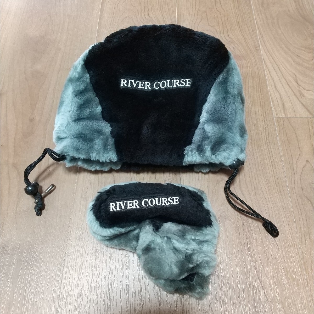 > RIVER COURSE ゴルフ ヘッドカバー ボア 中古現状品 ブラック×グレー 2点セット アイアン パター 送料185円