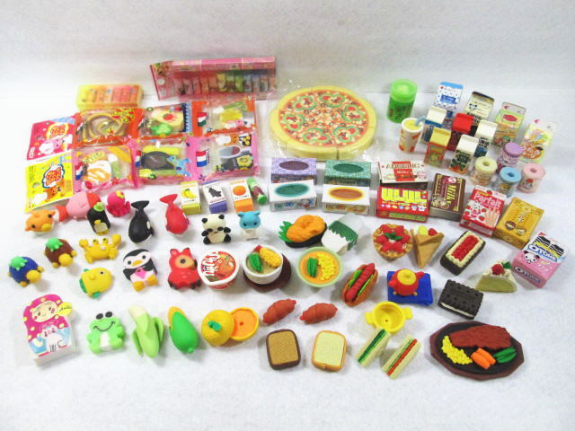 - ファンシー レトロ ミニチュア 消しゴム まとめて シャチ カメ ペンギン タコ パンダ ピザ ステーキ スイーツ 食べ物 飲み物 動物 他