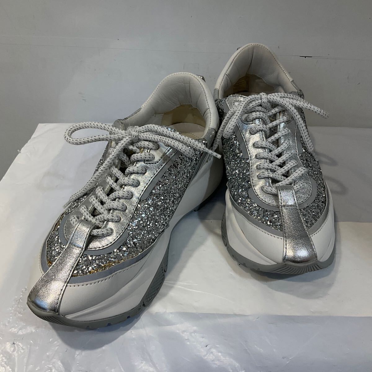 - JIMMY CHOO ジミーチュウ スニーカー 靴 グリッター ラメ シルバー×ホワイト RAINE サイズ37 23.5cm 645009