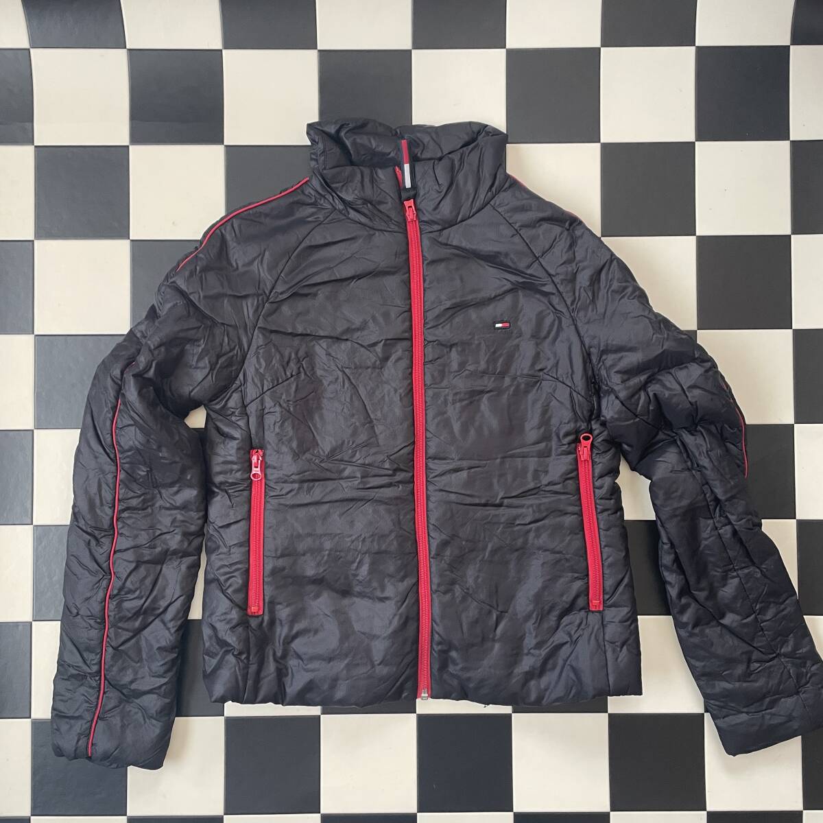 > tommy girl 中綿ジャケット サイズS Y5120 黒x赤 トミーヒルフィガー