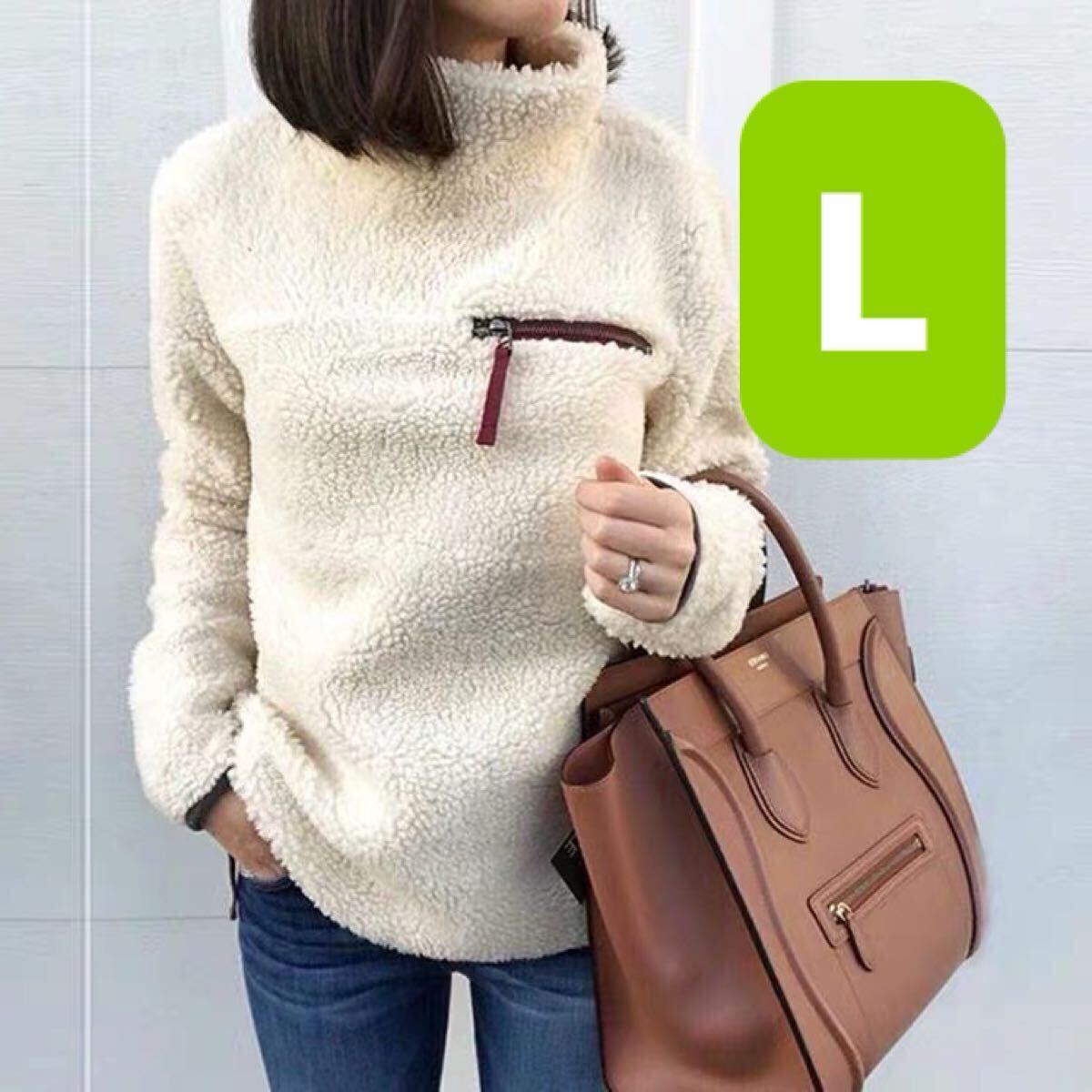 - ハイネック ふわふわ ニット セーター トレンド オルチャン 人気 セレブ かわいい スッキリ ゆったり モコモコ 渋谷 原宿系 白 L