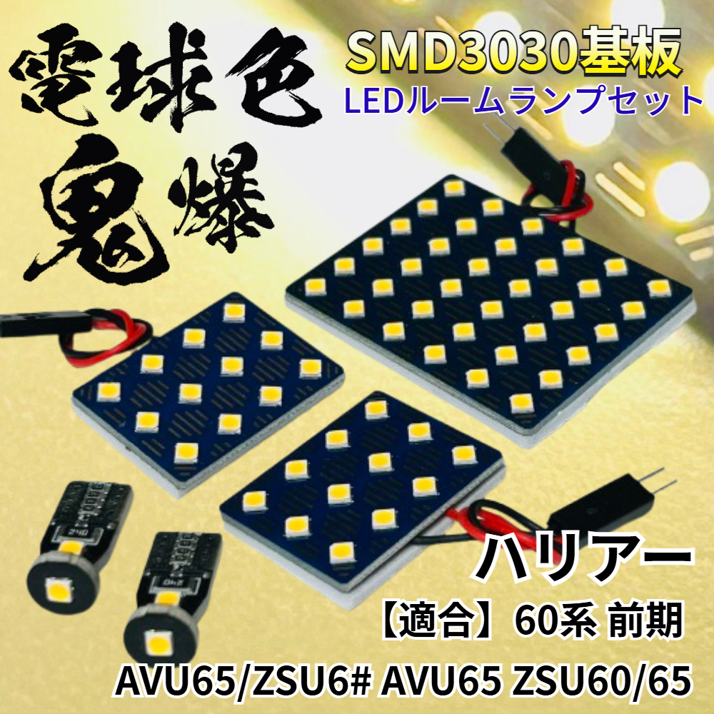 - 【電球色】ハリアー 60系 前期 AVU65/ZSU6# AVU65 ZSU60/65 暖色 鬼爆基板 3030SMD LED ルームランプ セット 車内灯 パーツ アクセサリ