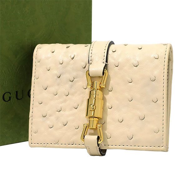 - 【送料無料】【本物】美品★GUCCI★グッチ★カードケースウォレット★ジャッキー1961★オーストリッチ★アイボリー★645536★二つ折財布★