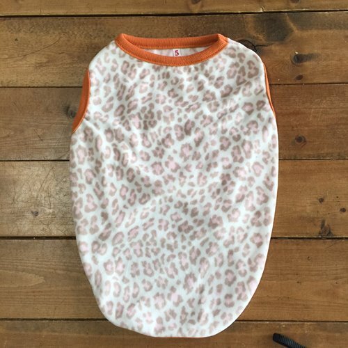 > 5号★送料無料・ネコポス便★昭和レトロ ベージュとピンクのヒョウ柄 暖か柔らかいフリース