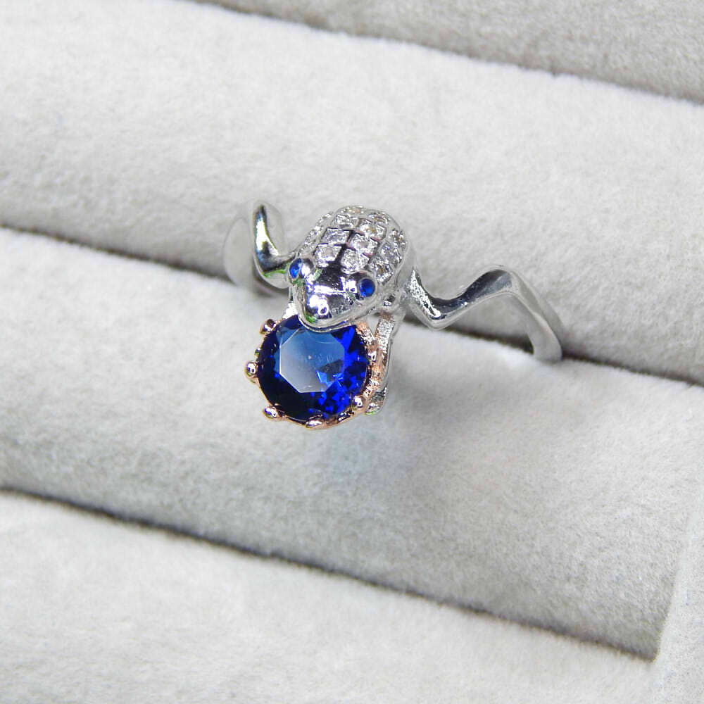 > 再入荷★新品★送料無料 13号 王冠&蛙 CZサファイアダイヤモンドリング レディースアクセサリー シルバー925 ジルコニア プラチナ仕上