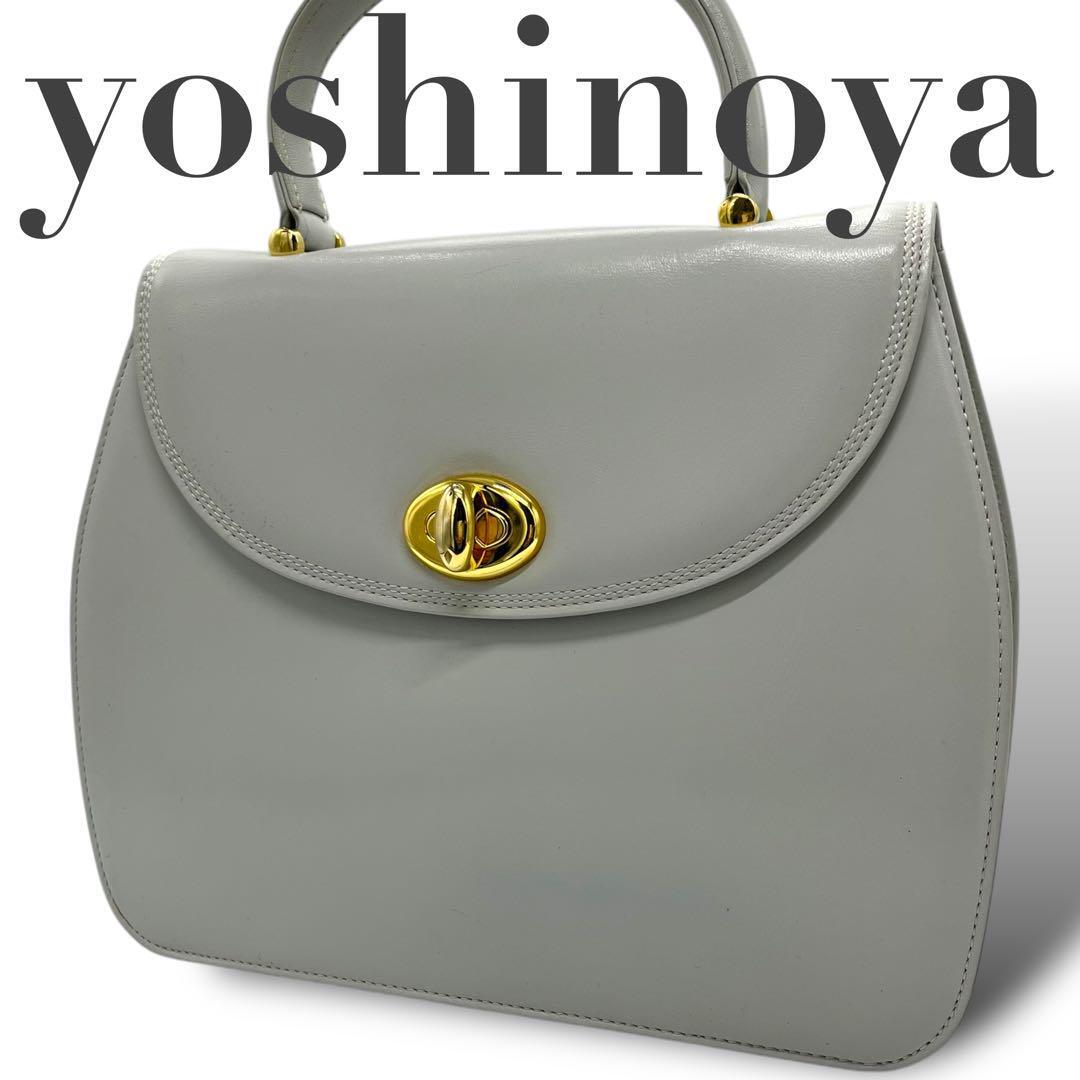 - 美品 yoshinoya ヨシノヤ ハンドバッグ ターンロック グレー レザー