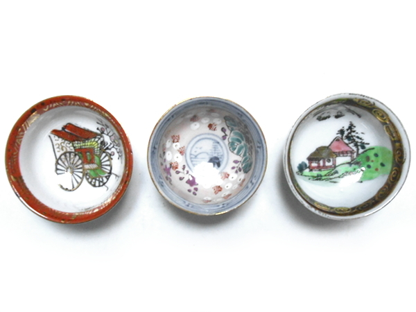 - 九谷焼★盃 御所車文様 花・山水文様 山水文様 3種