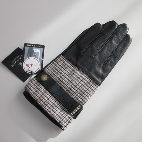 - メンズ革手袋【LANVIN】ランバン羊革手袋/装飾ベルト 甲側切り替え千鳥格子柄 スマホ対応 日本製 24/黒