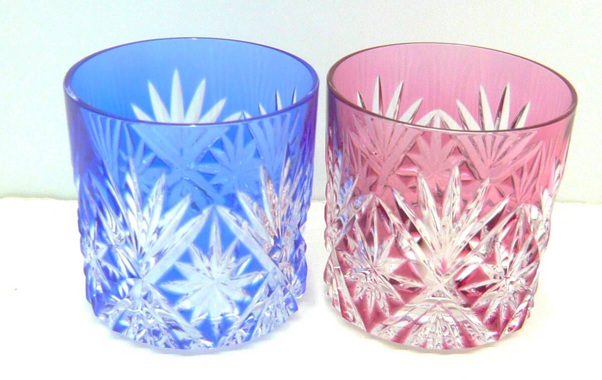 - [え39] HOYA クリスタル ペアグラス 赤 青 ショットグラス ぐいみ 切子グラス