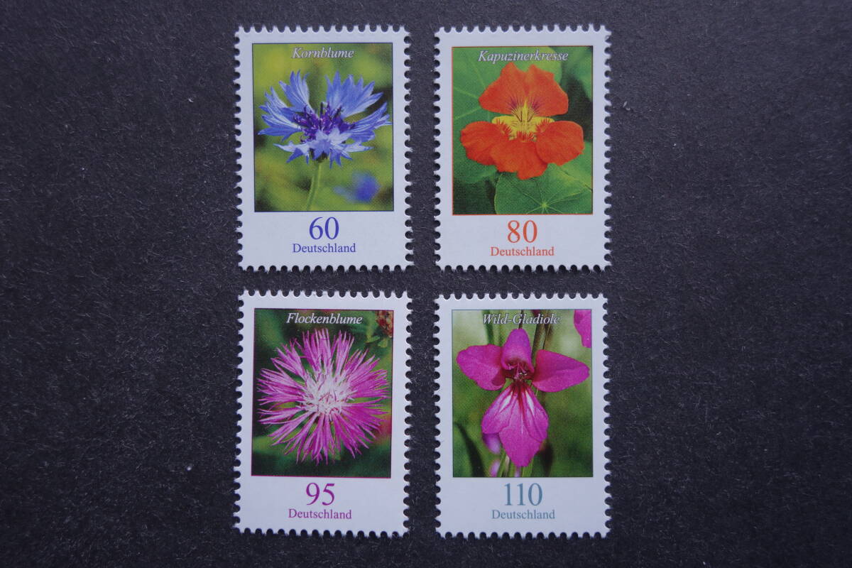 - 外国切手: ドイツ切手 「普通切手・花」(ヤグルマギク ほか)4種 未使用