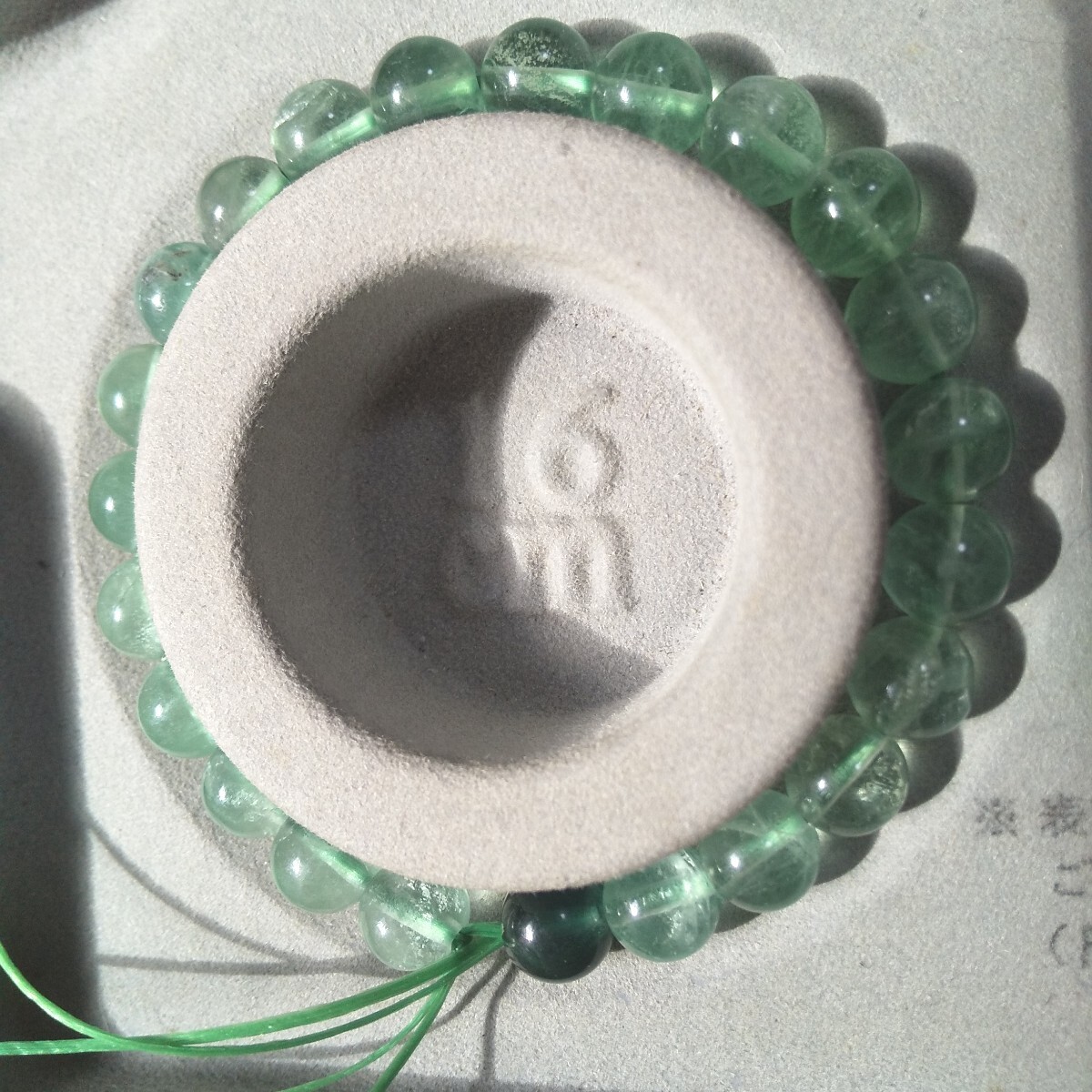- 天然石 グリーンフローライトに1ポイントブレスレッド 8㎜玉 内径約15,5cm お受験の御守り 知性の石 女性L、男性Mサイズ ブリコラ屋