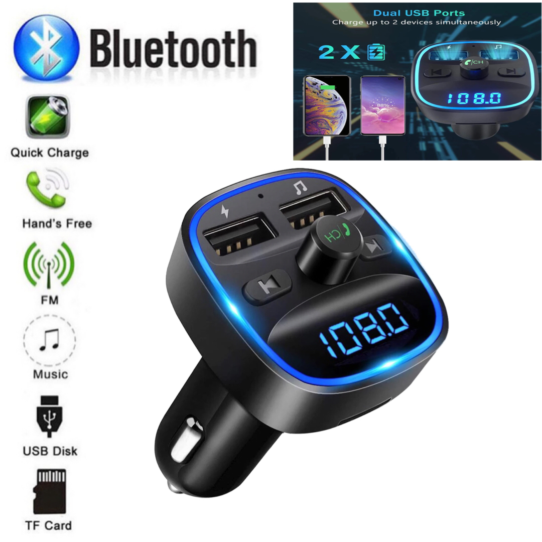 - Bluetooth FMトランスミッター 充電器 充電 音楽再生 二台同時充電 ハンズフリー スマホ シガーソケット SDカード USB ブルー