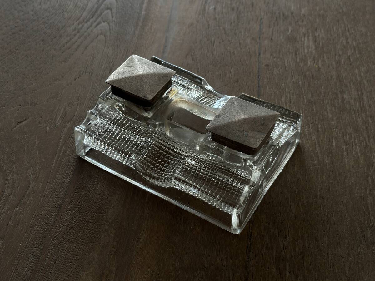 - インクポット 昭和レトロ レトロ ビンテージ アンティーク 古道具 ガラス 時代 ヴィンテージ ゆらゆらガラス
