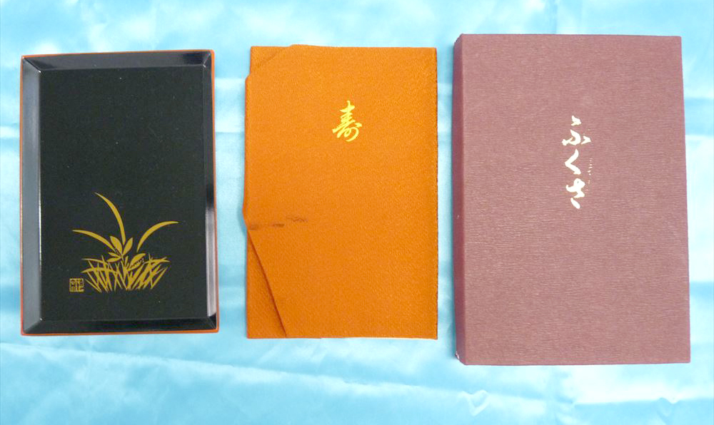 - 【未使用】ふくさ 切手盆セット 慶事用 袱紗 結婚式 祝儀袋 橙 男女兼用【周南地区店舗にて手渡し可】クリックポストOK
