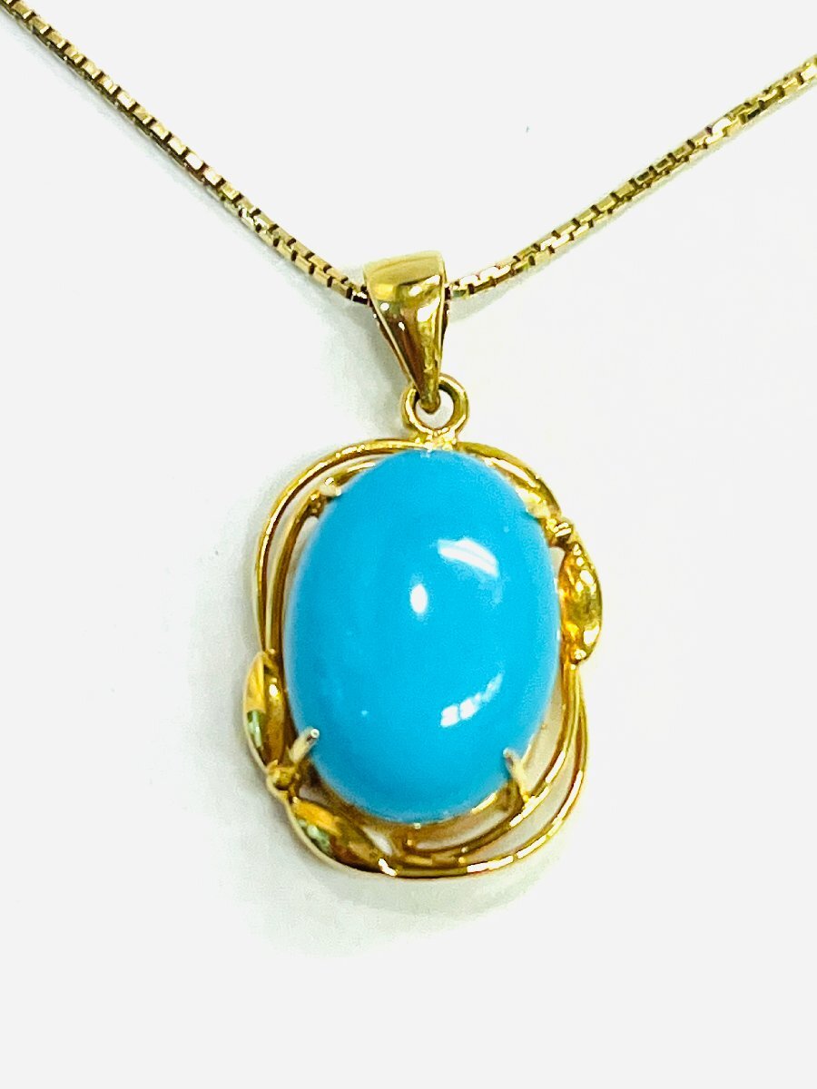 - qoj.YLM05 K18 ゴールド 天然トルコ石 ネックレス ソーティング付き