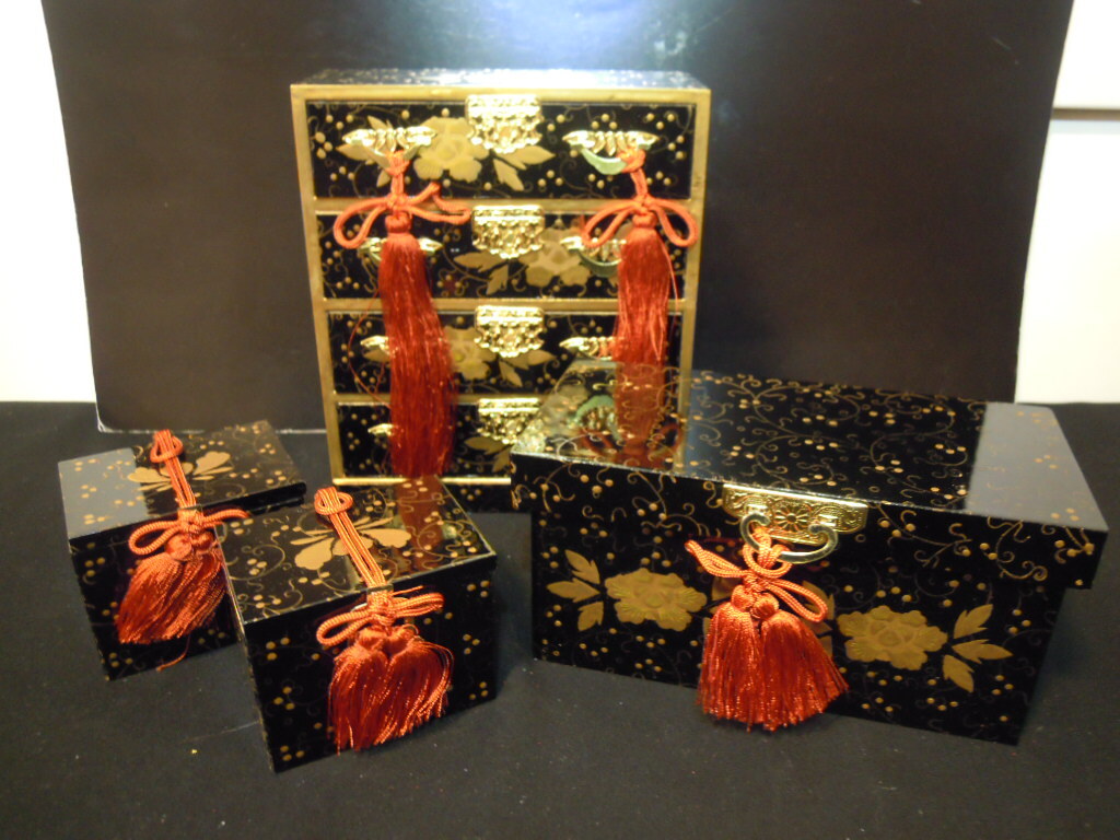 - 【蔵】雛道具 三つ揃 金泥蒔絵 箪笥 長持 両掛(小物入れ) ◇ レトロアンティーク ビンテージ ミニチュア 和雑貨②