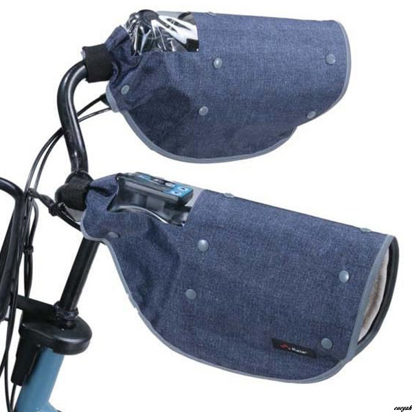 - 【夜間の安全性を高める反射バイアステープ付き】ハンドルカバー オールシーズン対応 デニム素材 取り付け簡単 透明窓付き