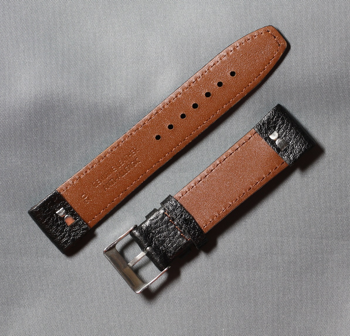 - 20㎜ オープンエンド 黒・ブラック イタリアンカーフ 型押 SS銀色尾錠 固定ラグ ワイヤーラグ用 fixed Lug 新品