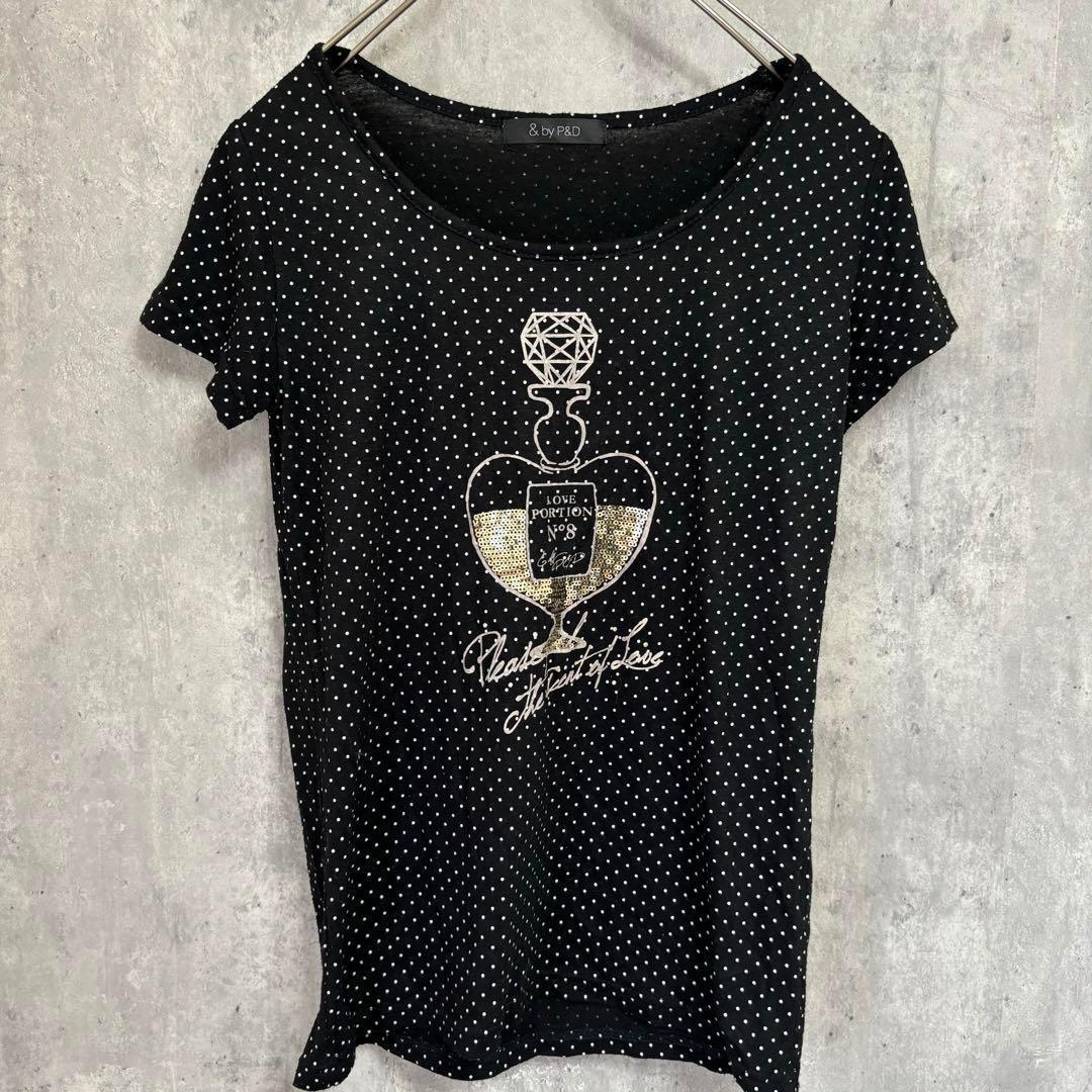 - 【ピンキーアンドダイアン】半袖トップス【38】(M)黒 ブラック ドット柄 古着