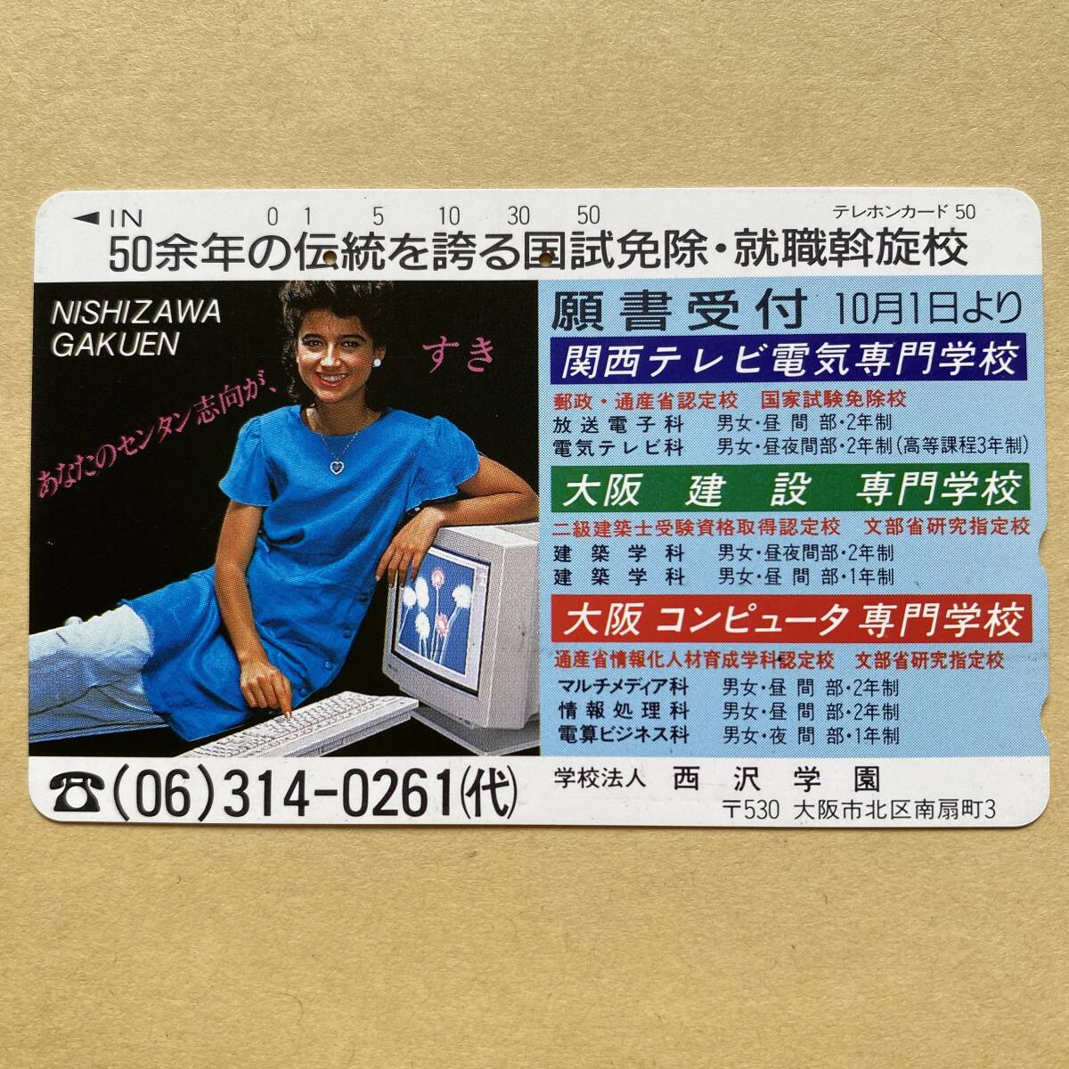 - 【使用済】 テレカ 外国人女性モデル 学校法人 西沢学園