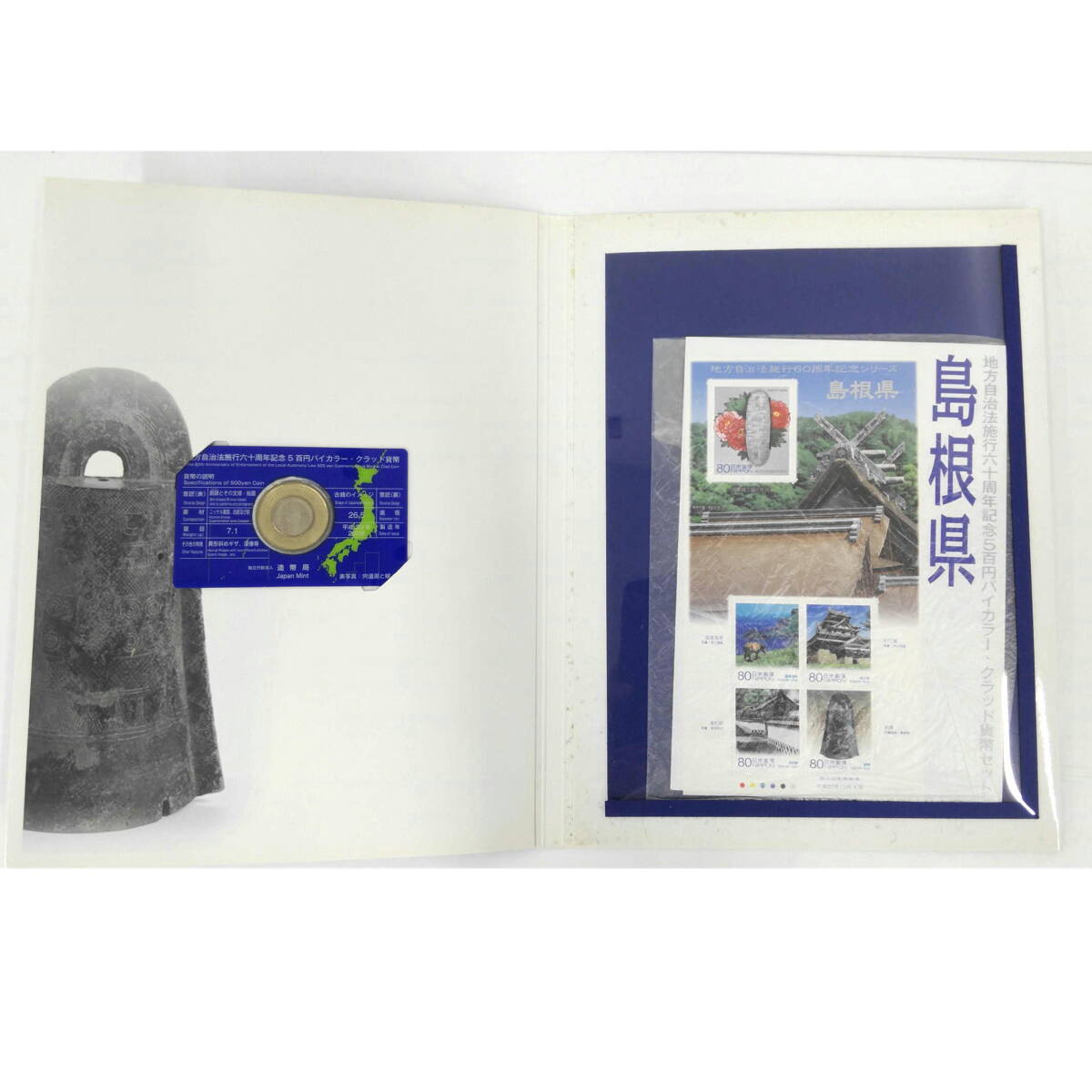 - 送料無料 島根県 地方自治法施行六十周年記念 五百円バイカラー・クラッドプルーフ 切手付き Bセット①