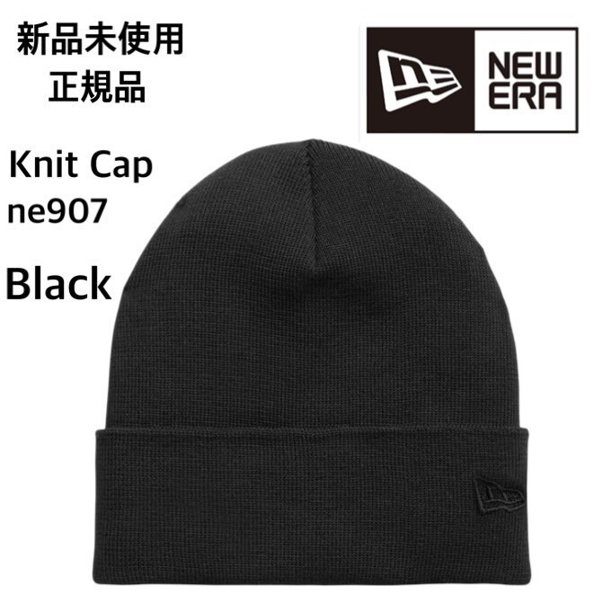 > 新品未使用 ニューエラ 刺繍 ニットキャップ 黒 男女兼用 日本未発売 NEW ERA ニット帽 ブラック ビーニー 海外限定 NE907