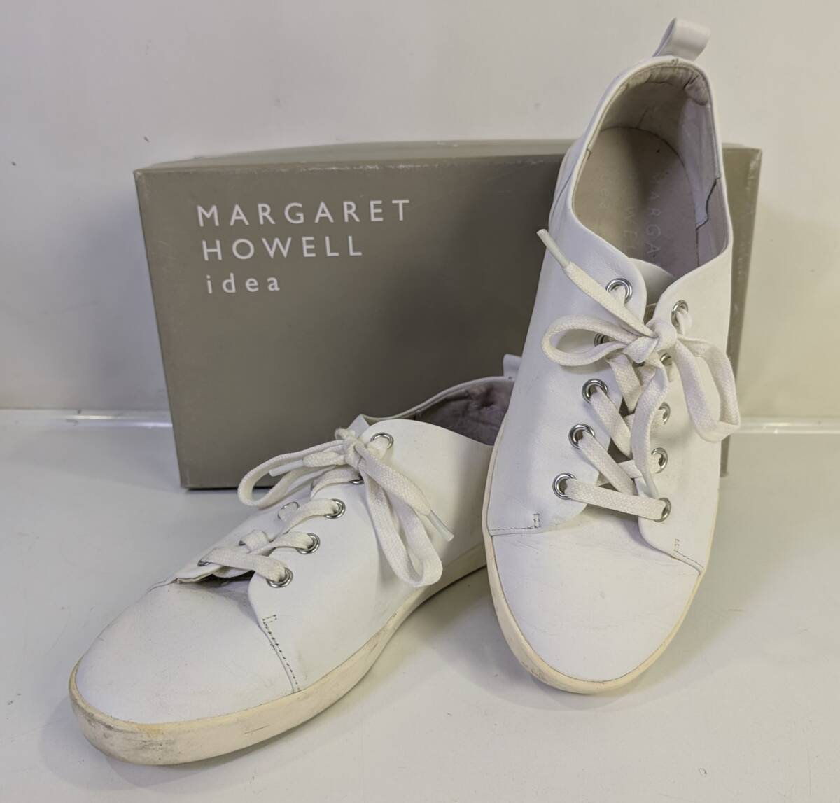 - □MARGARET HOWEL idea マーガレットハウエル アイデア レザーレースアップスニーカー 22.5cm ホワイト 2034