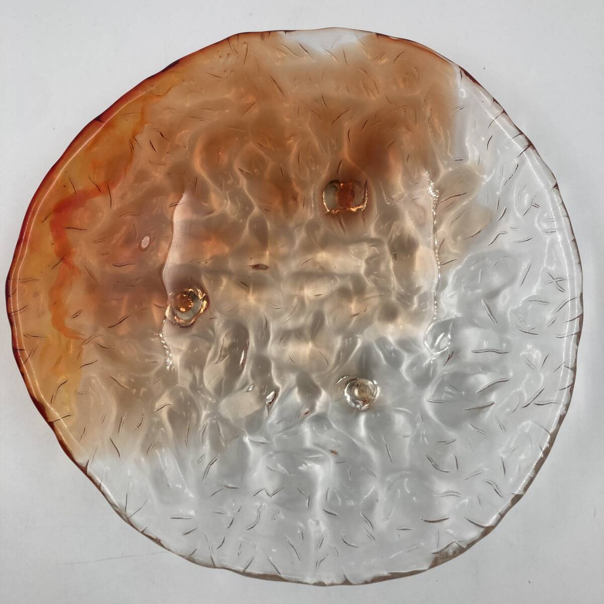 - 【中古】ガラス プレート皿 グラデーション ダイニング 3点脚 直径 約25cm