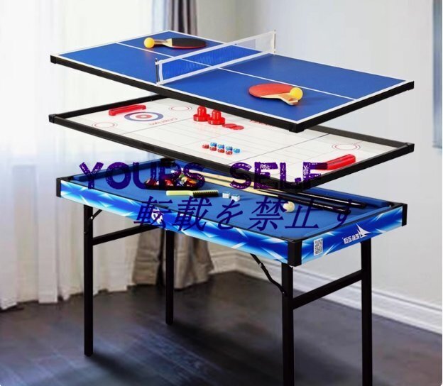 - 4in1 マルチゲームテーブル 家庭用 卓球台 ビリヤード台 エアホッケー台 カーリングボール台 折りたたみ 組み立て不要