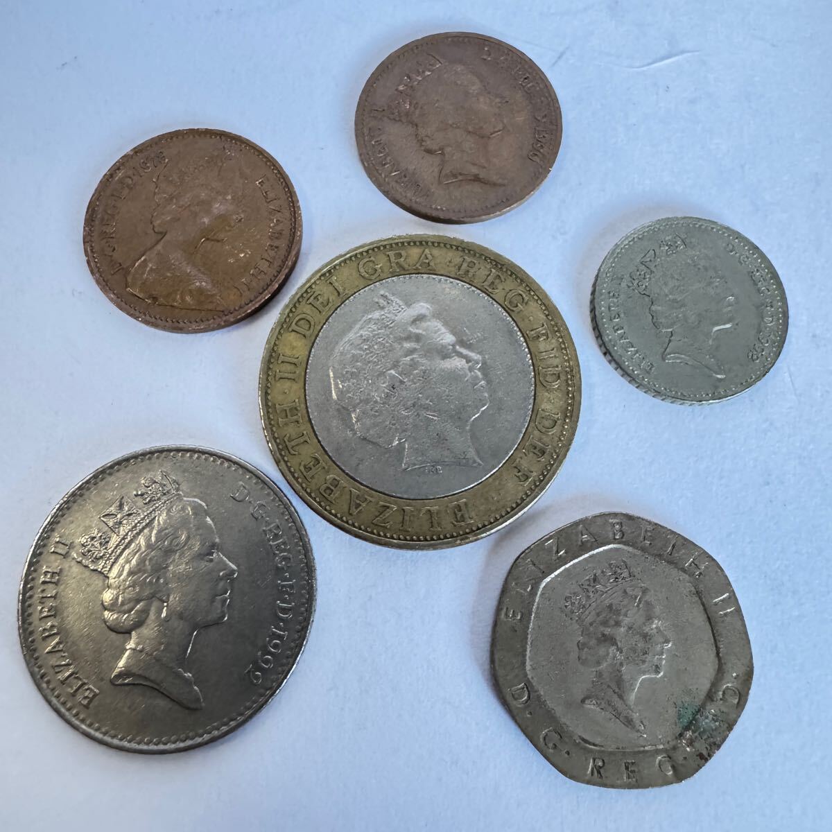 > イギリス コイン 硬貨 2ポンド 20ペンス 10ペンス 5ペンス 1ペニー 6枚セット 1989年 1992年 1991年 1978年 1978年