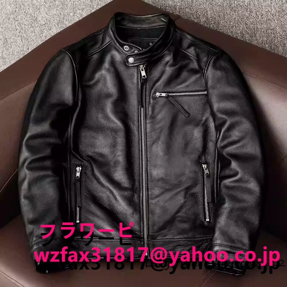 - 秋冬の最新モデルカウハイド 牛革 立ち襟 ヴィンテージ シングル イタリアンレザー ライダースジャケット レザージャケット バイクウエア M