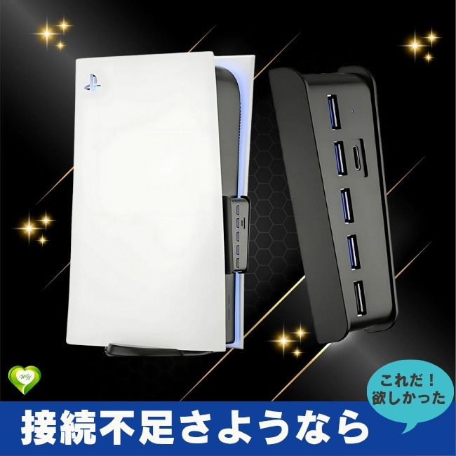 > 【接続不足さようなら】PS5用 USBハブ 高速拡張 TYPE-C USB 5ポート 充電 ゲーミング キーボード 安定性 軽量