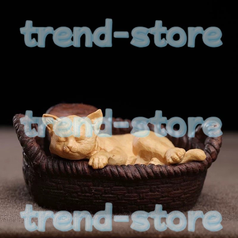- 動物 猫 飾り 置物 木彫 彫刻工芸品