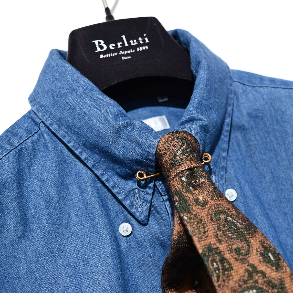 > SUIT SELECT スーツセレクト オックスフォード インディゴ シャンブレー ボタンダウン シャツ LL タンガリー