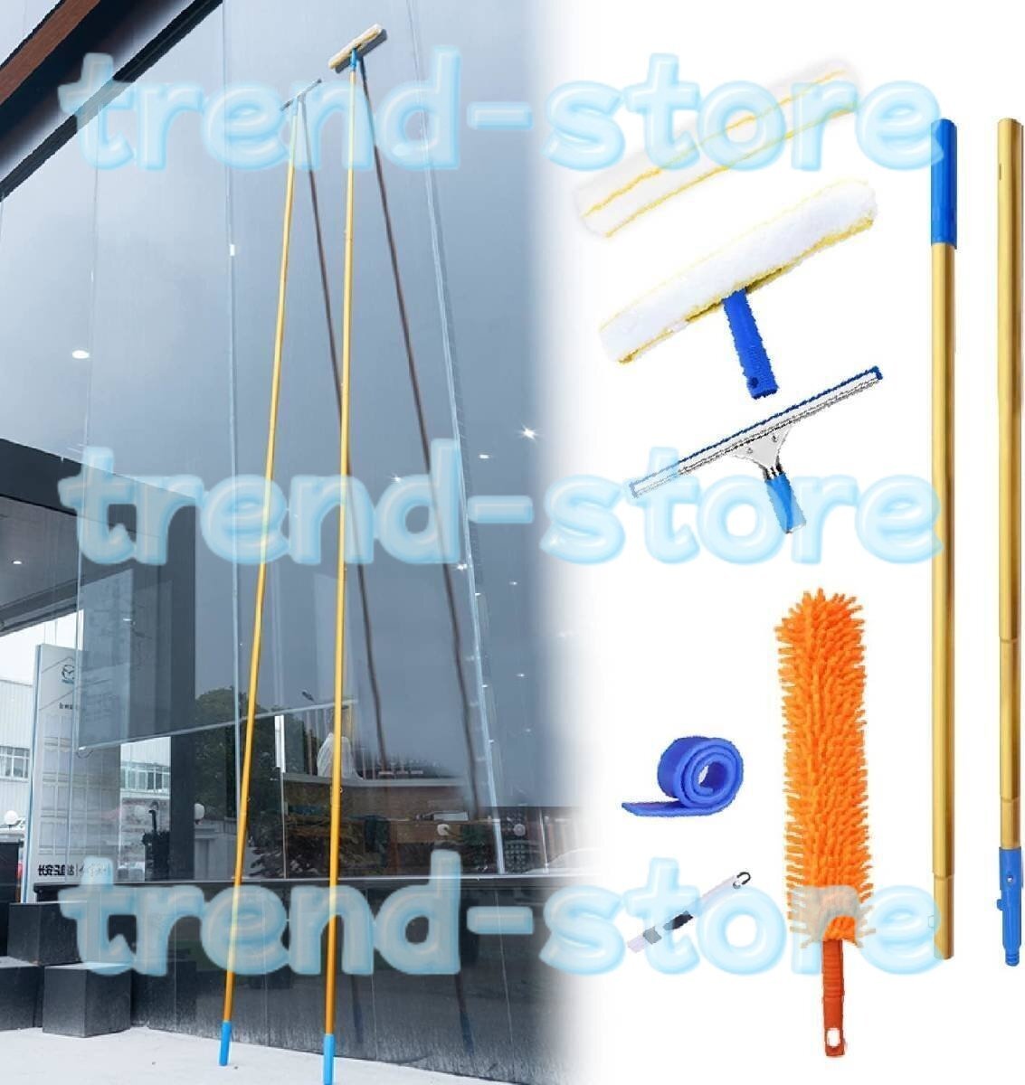 - ガラスワイパー 伸縮柄 クリーニングツール外壁 ロングモップ 大掃除セット クリーニングツールワイパー マルチセクション伸縮ロッド