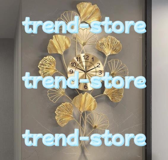 - 豪華 美品 銀杏 葉っぱ ゴールド デザイン 壁飾り 壁掛け時計 静音 電池式 家庭用 装飾