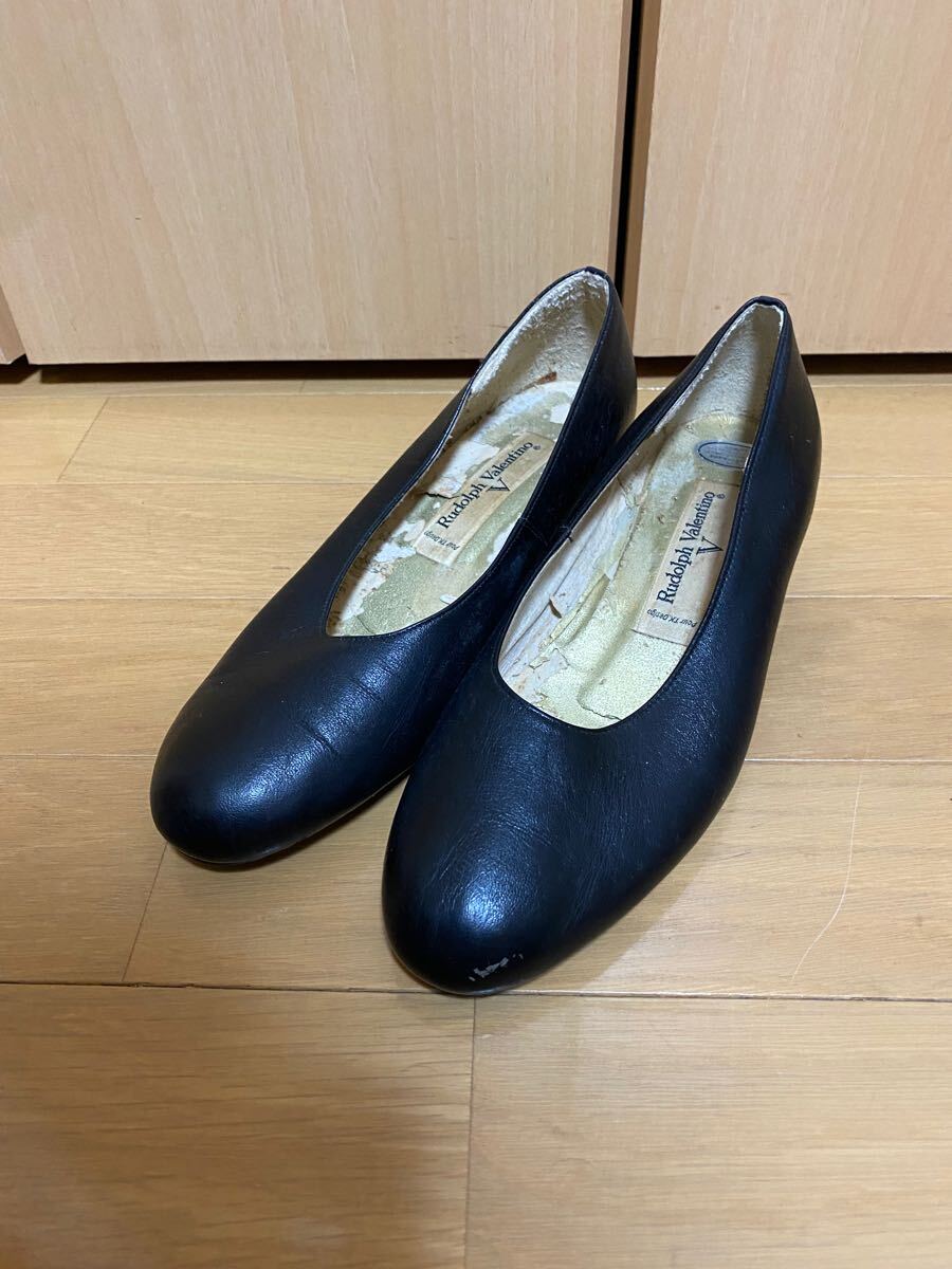 - 中古 Rudolph Valentino ルドルフバレンチノ レディース プレーン パンプス 黒 ブラック 23.0cm 使用感強め 訳アリ 仕事 オフィス ヒール