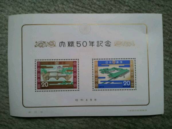 - 【未使用切手】 昭和大婚50年記念 宮殿 二重橋 小型シート