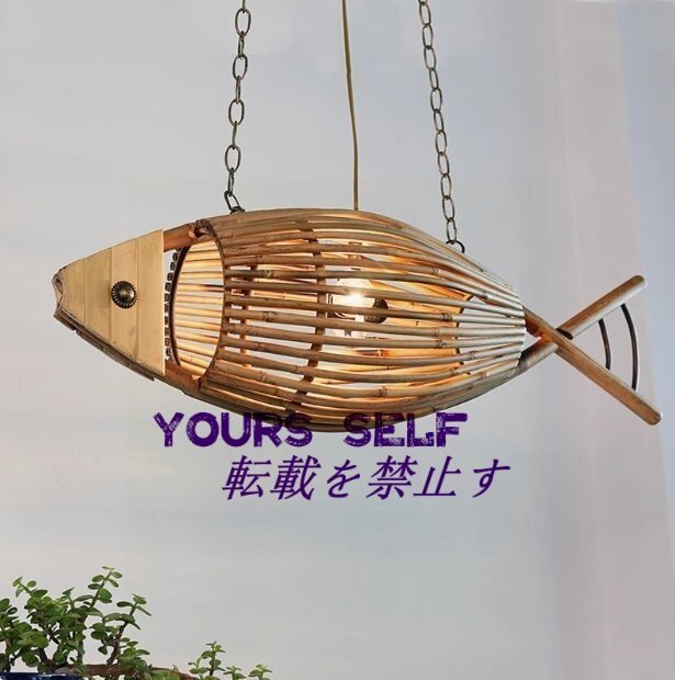 - 極美品★ジャパニーズスタイル 魚 バンブー ペンダントライト 和風 アジアンテイスト LED ルームライト スタイリッシュ 木製