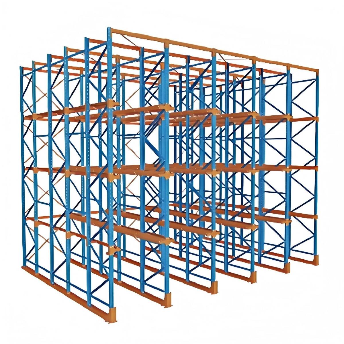 - ドライブインラック 倉庫荷物ラックオーダーメイド製作 3階 荷重1000kg/パレット フォークリフトが通れる 60個パレット位置 高さ調節可能