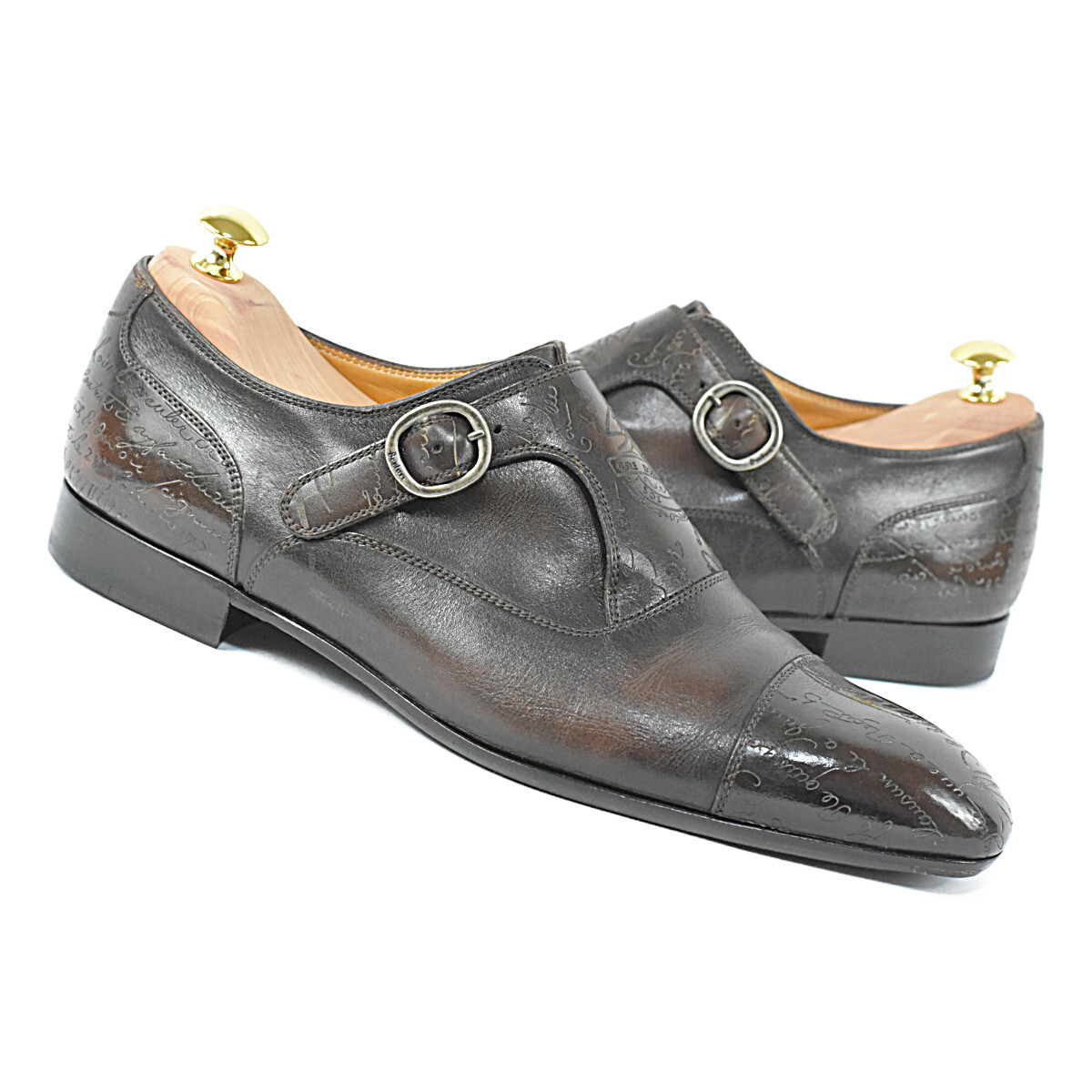 > ベルルッティ 美品 名作 カルロ シングル モンクストラップ スクリットカリグラフィ メンズシューズ 美しいパティーヌ BERLUTI CARLO